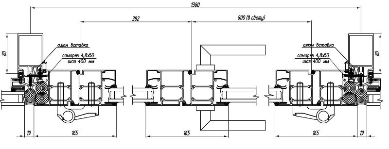 Наружный размер створок |
