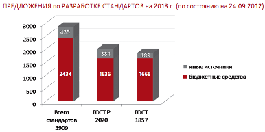 В своем выступлении руководитель Федерального агенства по техническому регулированию и метрологии особо подчеркнул роль участия промышленности России в разработке национальных стандартов и внес предложения по их разработке на 2013 год. По состоянию на 24 сентября 2012 года в 2013 году планируется разработать следующее количество документов: