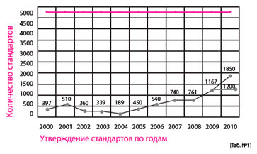 Такое большое количество документов, требующих пересмотра и переработки, является доказательной базой для технических регламентов, - а это, в свою очередь, реальная преграда для непрерывного хода и развития реформы в ускоренных темпах. В таблице 1 отражены реальные темпы разработки и обновления национальных стандартов России за последние 10 лет.