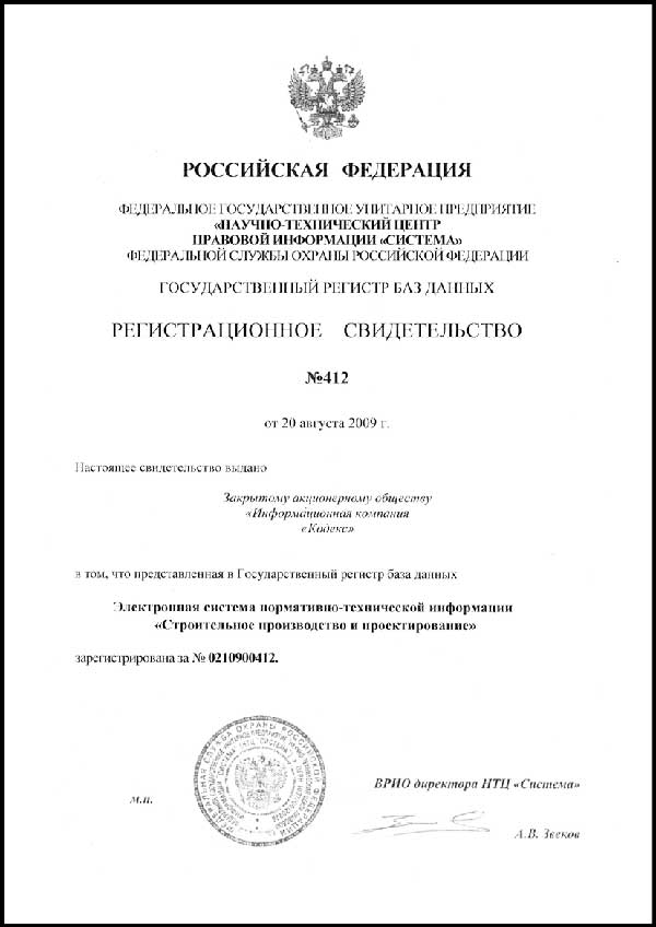 Регистрационное свидетельство № 409. ЭС«Типовая проектная документация. Строительные конструкции, изделия, узлы. Абонемент»