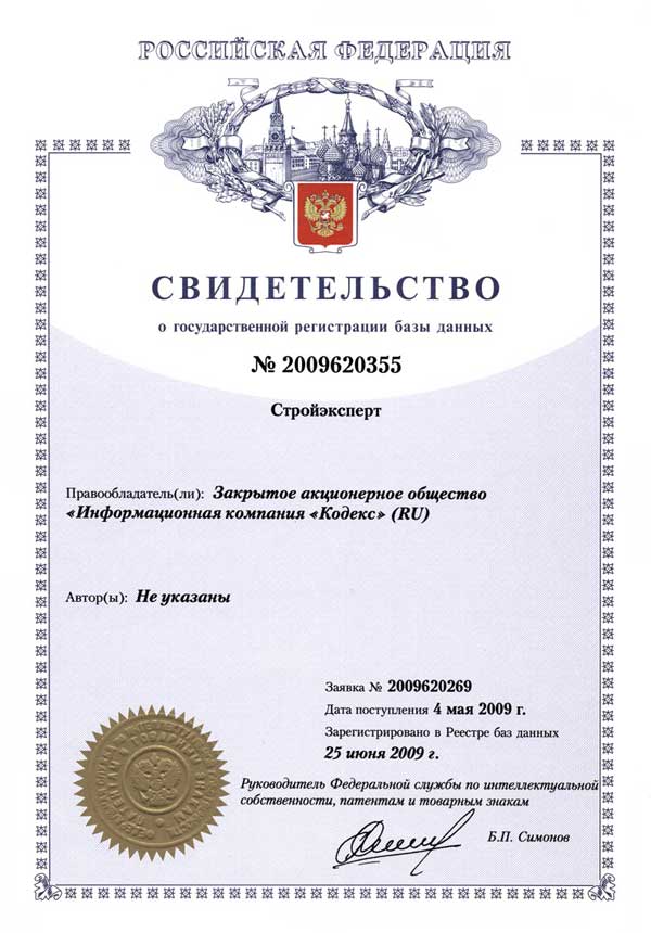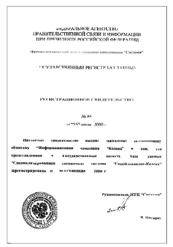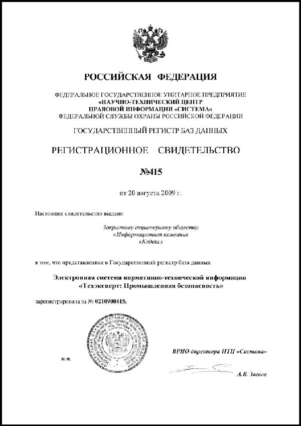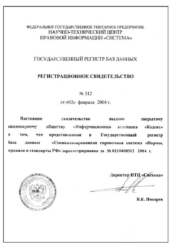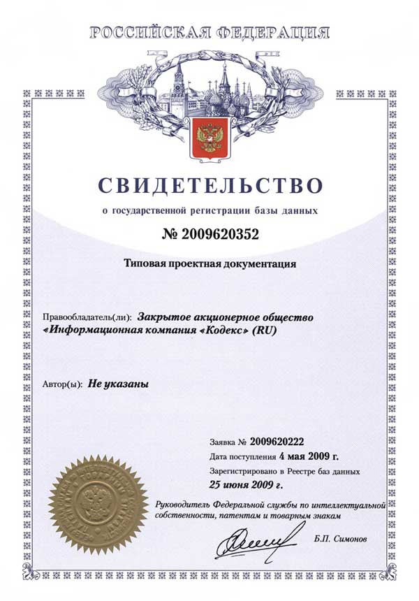 Сертификат соответствия Ростехрегулирования № РОСС RU.СП15.Н00674 с 13.01.2014 по 12.02.2016 гг.Свидетельство о государственной регистрации базы данных № 2009620352. " Типовая проектная документация"