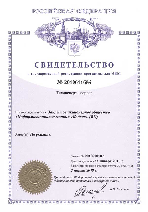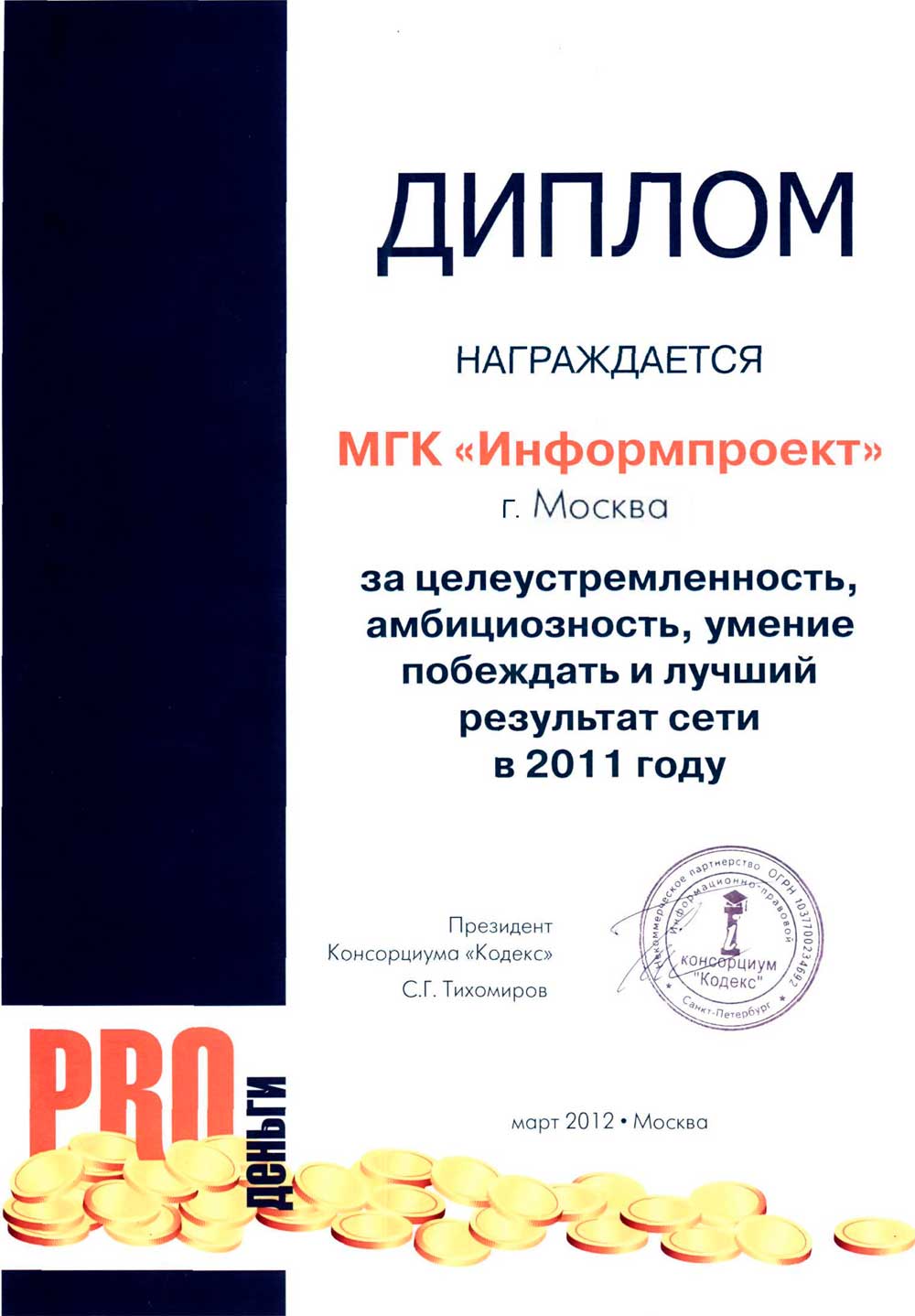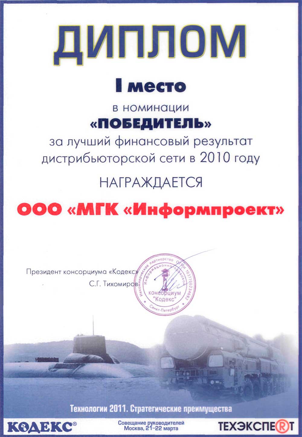Почетный диплом отделения информационных технологий и вычислительных систем РАН директору ОАО "Центр компьютерных разработок", Президенту консорциума "Кодекс" Тихомирову Сергею Григорьевичу - "За большой вклад в развитие информационных технологий в России и в связи с 15-летием выставки "Softool"
