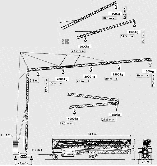Компания Terex Comedil разработала подъемный кран CBR 40H, который является не просто модифицированной версией предыдущей модели, а краном новой конструкции. Как и другие машины в линейке CBR, кран имеет функцию полностью автоматического складывания в пределах погрузочных габаритов и ничуть не уступает по основным характеристикам. По сравнению с моделью CBR 36H высота подъема крюка нового крана больше на 2,7 м, а гусек длиннее на 4 м. Особенностью всех машин серии CBR является то, что для раскладывания гуська не требуется места на земле, что позволяет сэкономить пространство при монтаже. Проблему демонтажа крана при строительстве высоких зданий специалисты компании Terex Comedil решают при помощи систем SERVICE DERRICK. Так, например, система CDK83-12 с канатным барабаном на 700 м может работать на высоте 350 м с грузами до 6 т, на высоте 230 м - до 9 т, на высоте 175 м - до 12 т. В следующем году линейку SERVICE DERRICK пополнит модель CDK 113-16 с 30-метровым гуськом грузоподъемностью 16 т.
