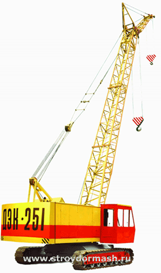 Стреловой, самоходный, полноповоротный, дизель-электрический, на гусеничном ходу ДЭК-251 с основной стрелой 14 метров грузоподъемностью 25 тонн предназначен для строительно-монтажных и погрузочно-разгрузочных работ, а также для перегрузки сыпучих грузов грейфером.