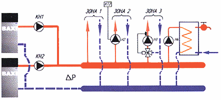 В данной статье хотелось бы в очередной раз в простой и доступной форме объяснить принцип действия гидравлического разделителя и остановиться на преимуществах в применении данного прибора. Вначале рассмотрим следующую типовую схему (рис.1).