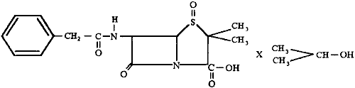 Изопропанольный сольват сульфоксида бензилпенициллина - кристаллическое вещество бежевого цвета с запахом, характерным для производных пенициллина. Плохо растворим в воде, метиловом и этиловом спиртах. Хорошо растворим в водных растворах кислот и щелочей. Разлагается при нагревании свыше 80 °С.