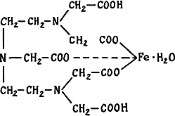 Железный комплекс диэтилентриаминпентауксусной кислоты, дипротонированный (ферроанемин) FеНДТПА - желтый кристаллический порошок, без запаха, Тразл. 230 °С, растворяется в воде (5 г/100 г при 20 °С).