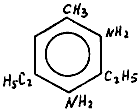 Диэтилтолуилендиамин - смесь 3,5-диэтилтолуилен-2,4-диамина (75,5%) и 3,5-диэтилтолуилен-2,6-диамина (21%), прозрачная темно-окрашенная жидкость, плотность 1,022, Тпл. - 9 °С, Т кип. - 308 °С, давление пара 10 мм рт.ст при 165 °С. Смешивается с органическими соединениями, в воде растворяется до 1% при 20 °С.