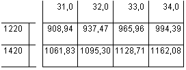 Пункт 1.3. Таблица 1. Графы "Теоретическая масса 1 м трубы, кг, при номинальной толщине стенки, мм 31,0; 32,0; 33,0; 34,0 для номинальных наружных диаметров труб 1220, 1420"