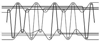 Примечание 1 - Ковры, тканные на одноуточном рапирном станке, имеют ворсовый ряд на каждой уточной нити (см. рисунок 8).