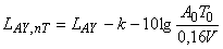 Уровень звука инженерного оборудования с учетом звукопоглощения приемного помещения, приведенный к опорной эквивалентной площади звукопоглощения и рассчитываемый по формуле