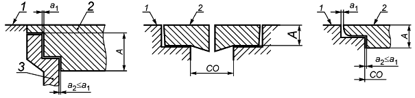 1 - поверхность прилегающего покрытия автомобильной дороги или пешеходной зоны; 2 - водоприемная решетка; 3 - стенка лотка; а, а