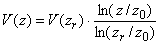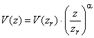 Математическое выражение для предполагаемого изменения скорости ветра по высоте над поверхностью земли.