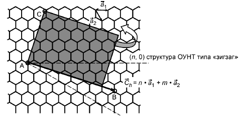 Характеристика ОУНТ, представляющей собой свернутый в цилиндр лист графена в направлении, заданном значениями n и m вектора хиральности (см. рисунок 1).
