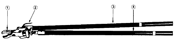 1 - челюсти; 2 - подвесной крючок; 3 - рукоятка поддержки; 4 - рукоятка управления