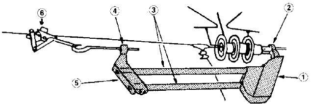 1 - боковина (с изолирующим покрытием); 2 - крюк; 3 - диэлектрические трубки; 4 - винтовой домкрат; 5 - боковина; 6 - натяжные монтажные зажимы (зажимы для троса)