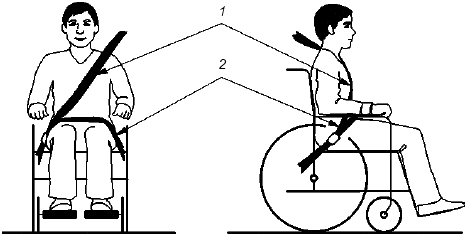 1 - диагональный ремень удержания; 2 - набедренный ремень удержания