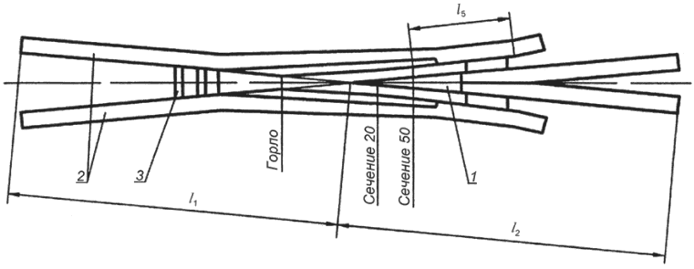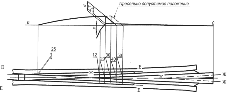Примечание - Здесь и далее для острых литых сердечников (и острых цельнолитых крестовин) положение важных поперечных сечений отливки и крестовины в сборе определяют путем измерения ширины клина (в миллиметрах) на уровне измерения (см. рисунки 4.2-4.4) или по конструкторским документам для каждого проекта (положение этих сечений специально указано).