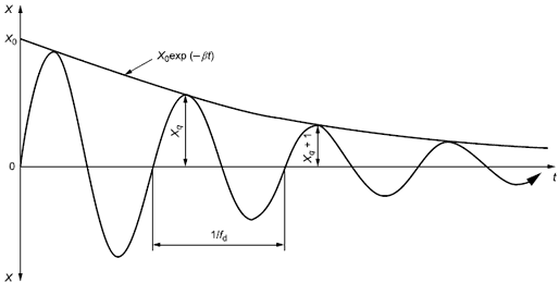 Коэффициент, определяющий уменьшение амплитуды свободно затухающих колебаний со временем, т.е. зависимость от времени амплитуды деформации или скорости деформации [рисунок 3 и формула (8)].