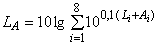 где L - уровень звукового давления в i-й октавной полосе, и A - значения частотной характеристики А для i-й октавной полосы (см. приложение А). Значение L зависит от вида измерений и может быть значением любой из указанных в 3.6 величин.