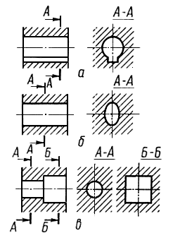 Отверстие, у которого хотя бы одно поперечное сечение не является окружностью (эскизы а, б, в)