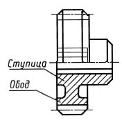 Утолщенная центральная часть зубчатого колеса с отверстием для посадки на вал, соединенная с ободом колеса спицами или диском