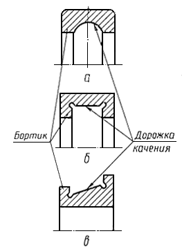 Поверхность кольца подшипника качения, по которой катятся тела качения (эскизы , б, в)