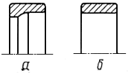 Дорожка качения, ограниченная одним бортиком для шариков (эскиз а ), или без бортиков для роликов (эскиз б)