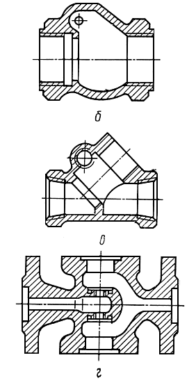 Часть корпуса с отверстием, на кромку которого опирается тарелка запорного органа (клапана) (эскизы а, б, в, г)