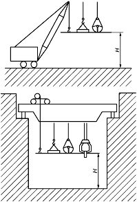 Примечание - Для мостовых кранов высота подъема принимается от уровня пола.