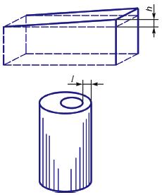 Примечание - Для изделия, имеющего форму тела вращения, - дефект в виде разной толщины противоположных стенок в любом сечении