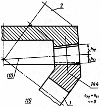 * Слова "делительный конус", "соосный конус", "являющийся" и "начальным конусом" заменяются словами "делительная плоскость", "соосная плоскость", "являющаяся" и "начальной плоскостью" при плосковершинном плоском производящем колесе.