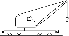 Кран стрелового типа, смонтированный на железнодорожной платформе, передвигающейся по железнодорожному пути