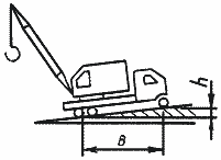 Уклон, на котором допускается работа крана, определяют отношением , выраженным в процентах, соответствующим разности уровней двух точек пути, находящихся на расстоянии В, равном базе крана. Значение разности уровней измеряется при отсутствии нагрузки на данный участок пути