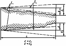 1 - реальный профиль; 2 - прилегающий профиль продольного сечения