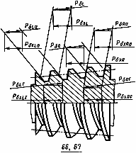 Примечание. Соответственно шагам линий витков различают осевые шаги линий витков правых поверхностей: делительный (), вершин витков (