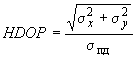 Коэффициент пропорциональности между среднеквадратической погрешностью определения горизонтальных координат и потребителя ГНСС и среднеквадратической погрешностью определения псевдодальности до навигационного космического аппарата ГНСС , рассчитываемый по формуле .