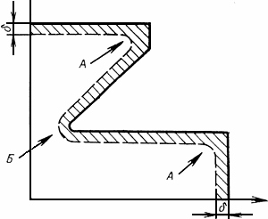 Образование местного утонения диффузионного слоя вследствие недостаточного поступления диффундирующего вещества с поверхности насыщения во впадине детали, которое может сопровождаться местным понижением его средней концентрации (см. черт.5)