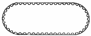 Ремень, прямое сечение которого имеет форму прямоугольника, на внутренней стороне которого расположены на равном расстоянии друг от друга поперечные зубья трапециевидного профиля