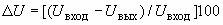 - соответственно входное и выходное напряжения, измеренные одновременно при подключенной полной активной нагрузке.