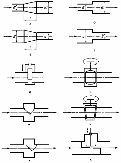 Конусное сужение трубопровода или уступ (см. рисунок А.3г), если они соответствуют условиям