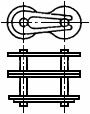 Составная часть двухрядной цепи, состоящая из вилки соединительного звена, пары промежуточных пластин, соединительной пластины и пружинного замка