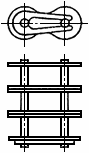Составная часть трехрядной цепи, состоящая из вилки соединительного звена, двух пар промежуточных пластин, соединительной пластины и пружинного замка.