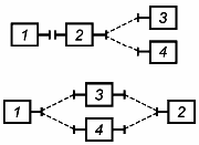 1 - генератор; 2 - ЭС; 3, 4 - сличаемые ваттметры