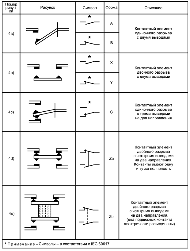 Комбинированный элемент, содержащий один замыкающий и один размыкающий контактные элементы (см. рисунки 4с, 4d и 4е).