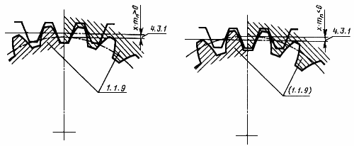 Примечание. Смещение исходного контура принимается положительным, если делительная плоскость не пересекает делительной поверхности зубчатого колеса, и отрицательным, если пересекает ее.