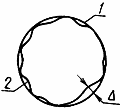 Наибольшее расстояние в радиальном направлении между точками реальной поверхности и сферы, расположенной вне материала и описанной или вписанной в эту поверхность