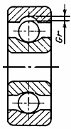 Примечание. При каждом предельном эксцентрическом положении колец относительно друг друга их относительное осевое положение и положение тел качения относительно дорожек качения должно быть таким, чтобы одно кольцо действительно приняло крайнее эксцентрическое положение относительно другого кольца