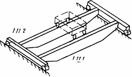 Несущая конструкция: у мостового крана или мостового крана-штабелера, предназначенная для движения по ней грузовой тележки или поворотного крана, а у мостовых кранов и мостовых кранов-штабелеров и для опирания на ходовые тележки; у мостокабельного крана - для связи опор крана и закрепления на ней несущих канатов