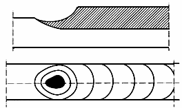 Дефект в виде полости или впадины, образовавшийся при усадке расплавленного металла при затвердевании (располагается, как правило, в местах обрыва дуги или окончания сварки), рис.П1.30.